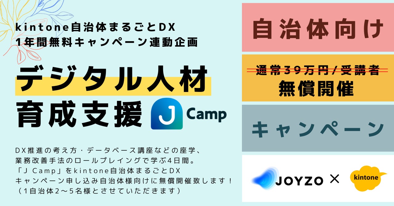 ジョイゾー、サイボウズ提供の「kintone自治体向けキャンペーン」への参加自治体に対して、デジタル人材育成の教育サービス「J Camp」を特別無償提供