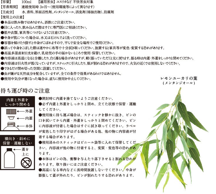 容量100mlは室内に置いた場合、約3ヶ月程度の使用が可能です。