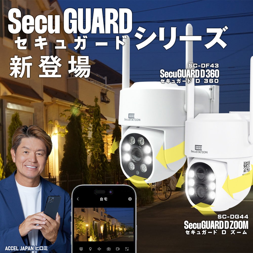 ネットワーク防犯カメラを展開する新鋭株式会社は、SecuSTATION(セキュステーション)より、パンチルトタイプの防犯カメラ「SecuGUARD セキュガードD360 (SC-DF43)」、光学ズーム搭載モデル「SecuGUARD セキュガードDズーム (SC-DG44)」を新発売いたしました。