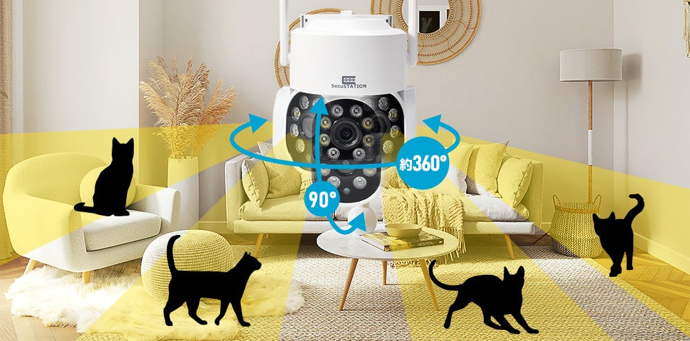 自動巡回モードでは、セキュガードが常に動いて広範囲を撮影することも可能です。