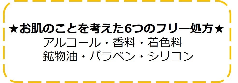 お肌のことを第一に考え、アルコール・香料・着色料・鉱物油・パラベン・シリコンフリー処方のため、敏感肌や乾燥肌の方でもお使いいただけます。