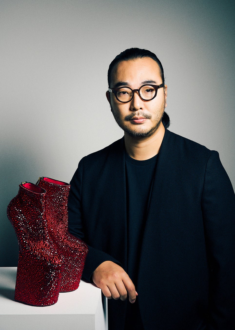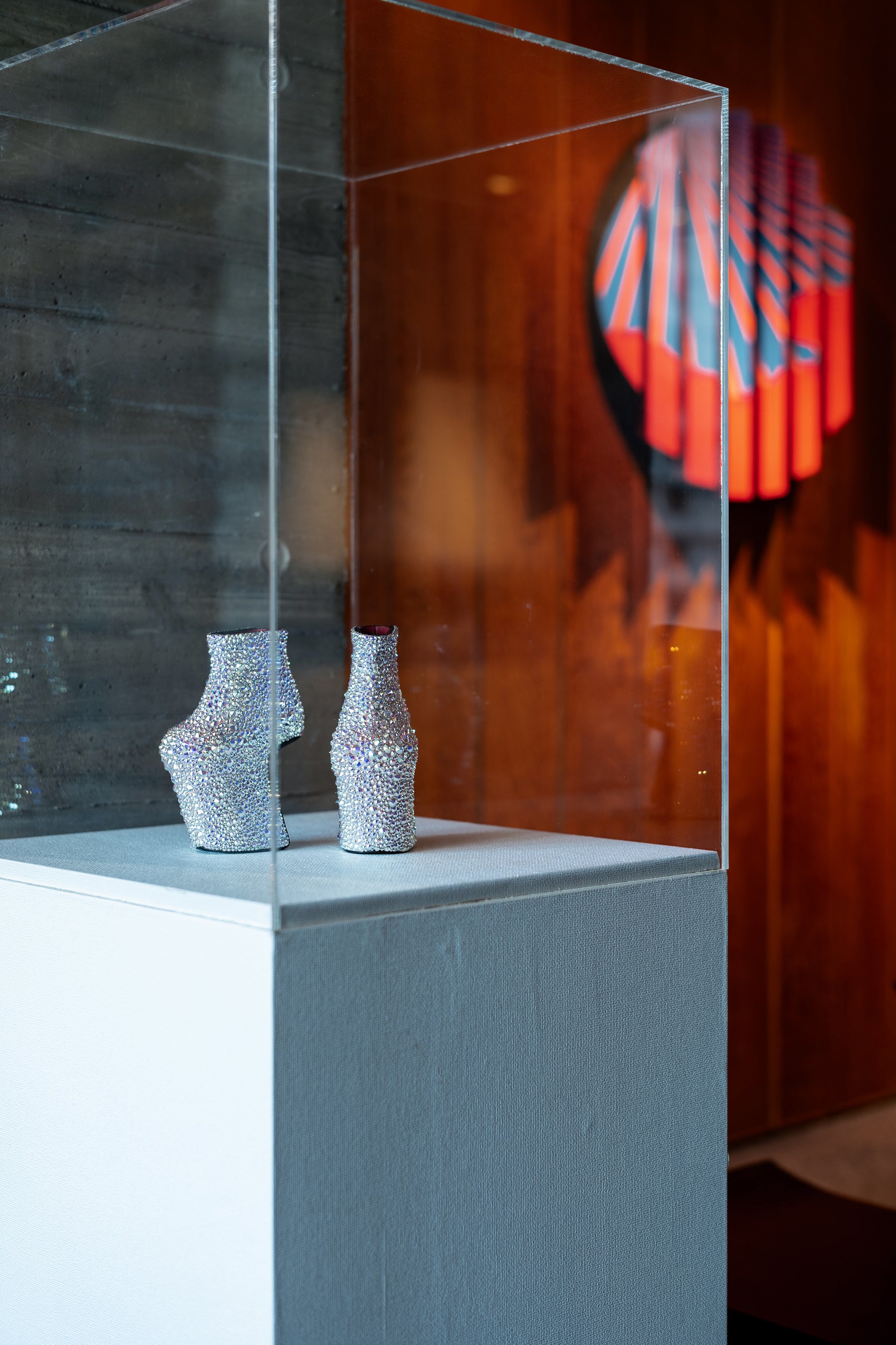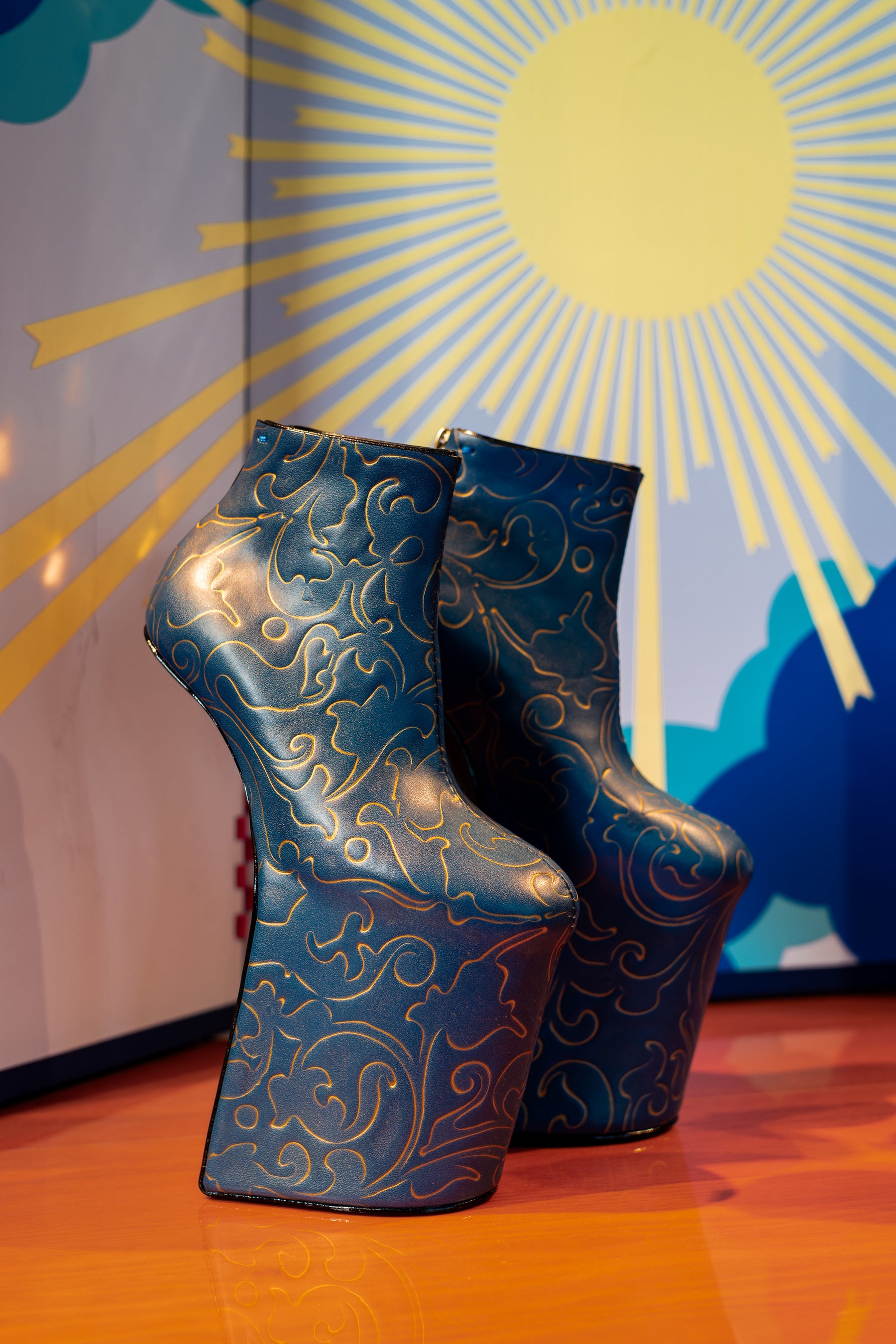 《Heel-less Shoes》は、江戸時代の花魁が履く高下駄から着想を得て制作された舘鼻則孝の代表作です。2010年に東京藝術大学の卒業制作展で初めて公開された本作は、米国歌手レディー・ガガに愛用されたことでも世界的に知られています。舘鼻は、レディー・ガガの専属シューメイカーとして、約2年間で25足以上の作品を提供しました。