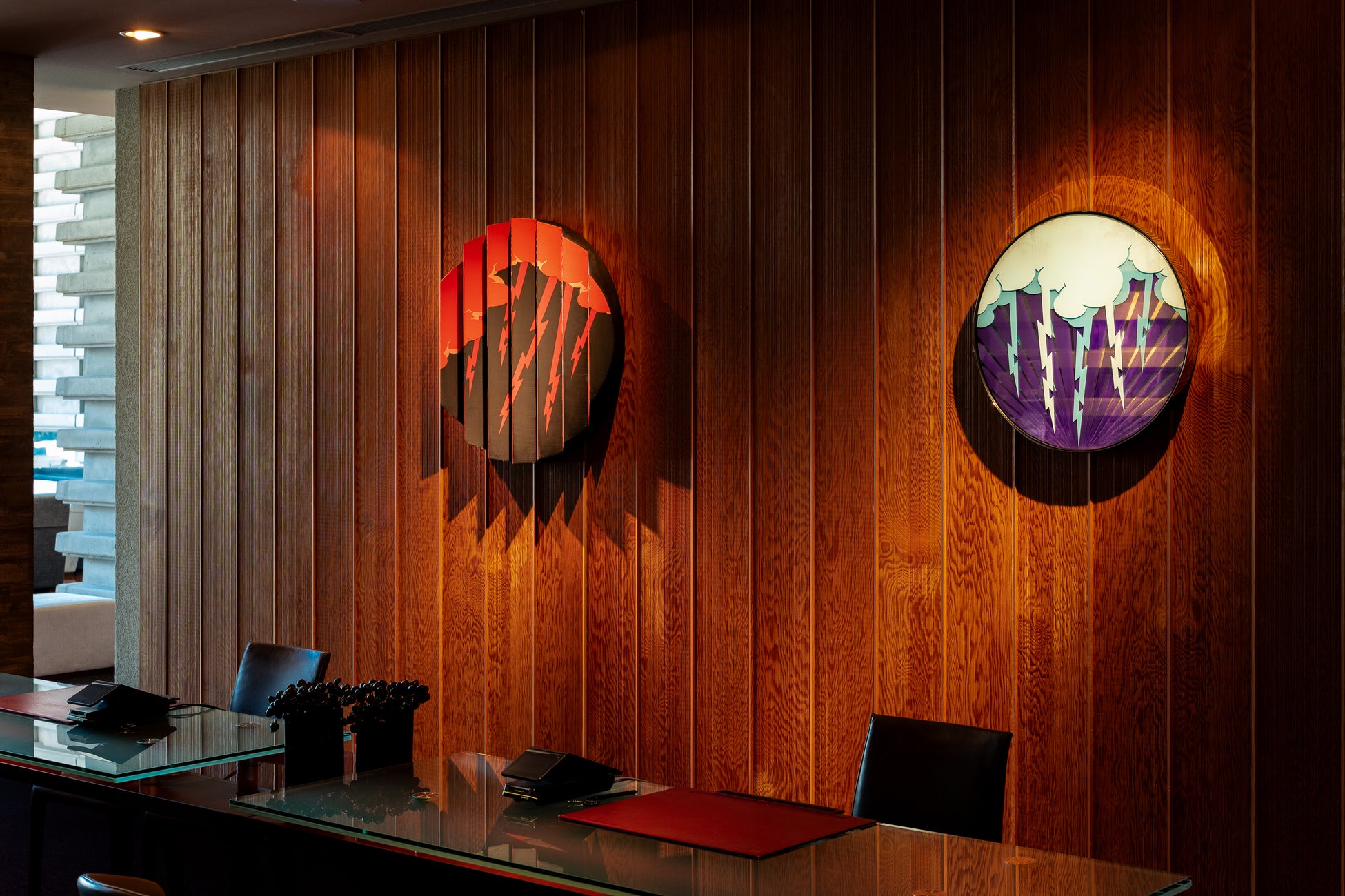 「リバーリトリート雅樂倶」は、ホテルグランミラージュや樂翠亭美術館を営む株式会社アイザックの関連施設となります。舘鼻は、同社が運営するホテルグランミラージュの9階に位置する「スパ・バルナージュ」の浴室アートワークも手掛けています。