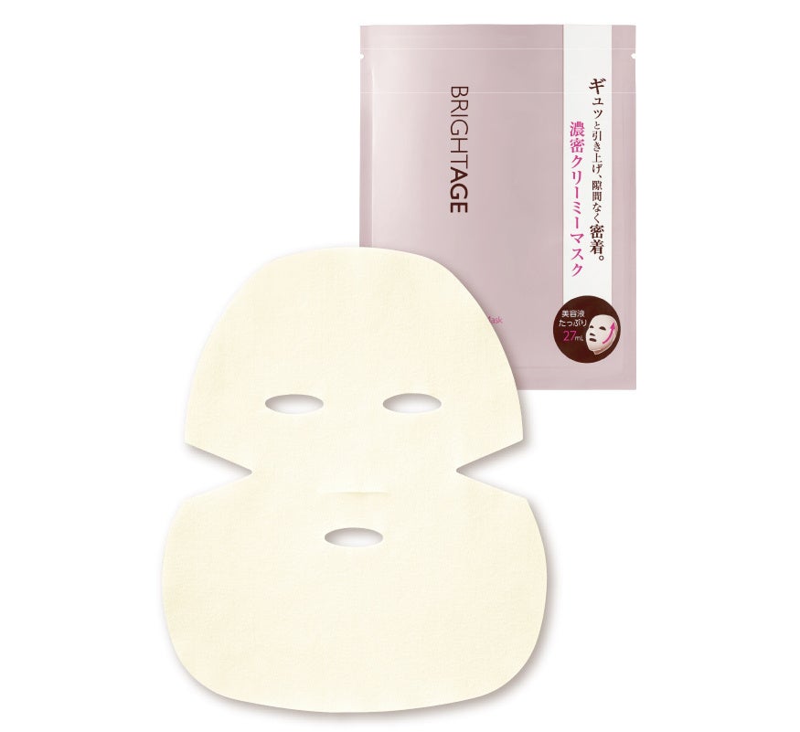 高保水力の繊維を組み合わせた3層構造の肉厚シートで美容成分をたっぷり抱え込み、頬のたるみを引き上げるこだわりの形状を採用。