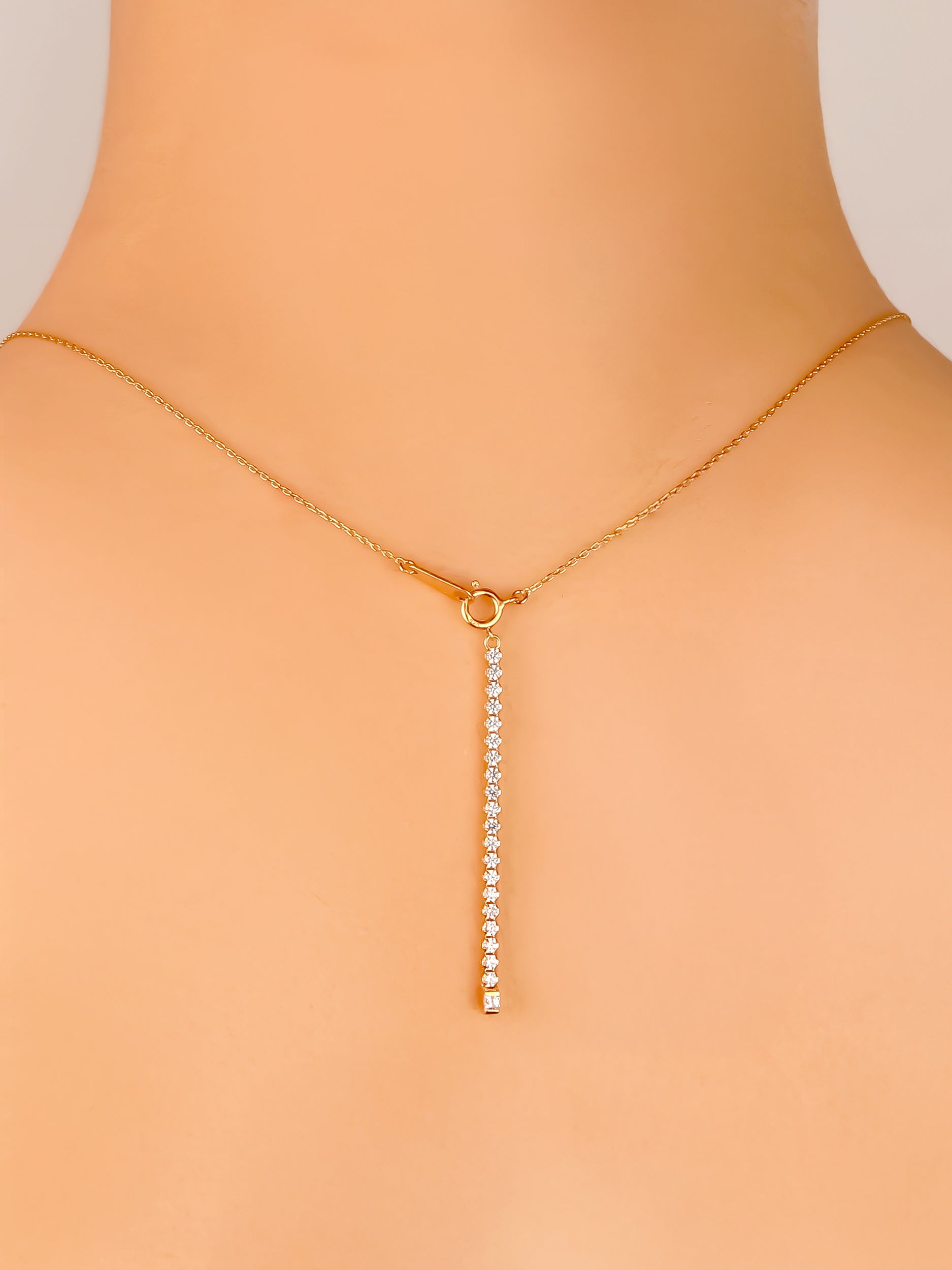 Vネックに合わせれば縦のラインが際立ち、背中の開いたトップスやドレスには、バックラインの輝きが上品な華やぎを添えます。