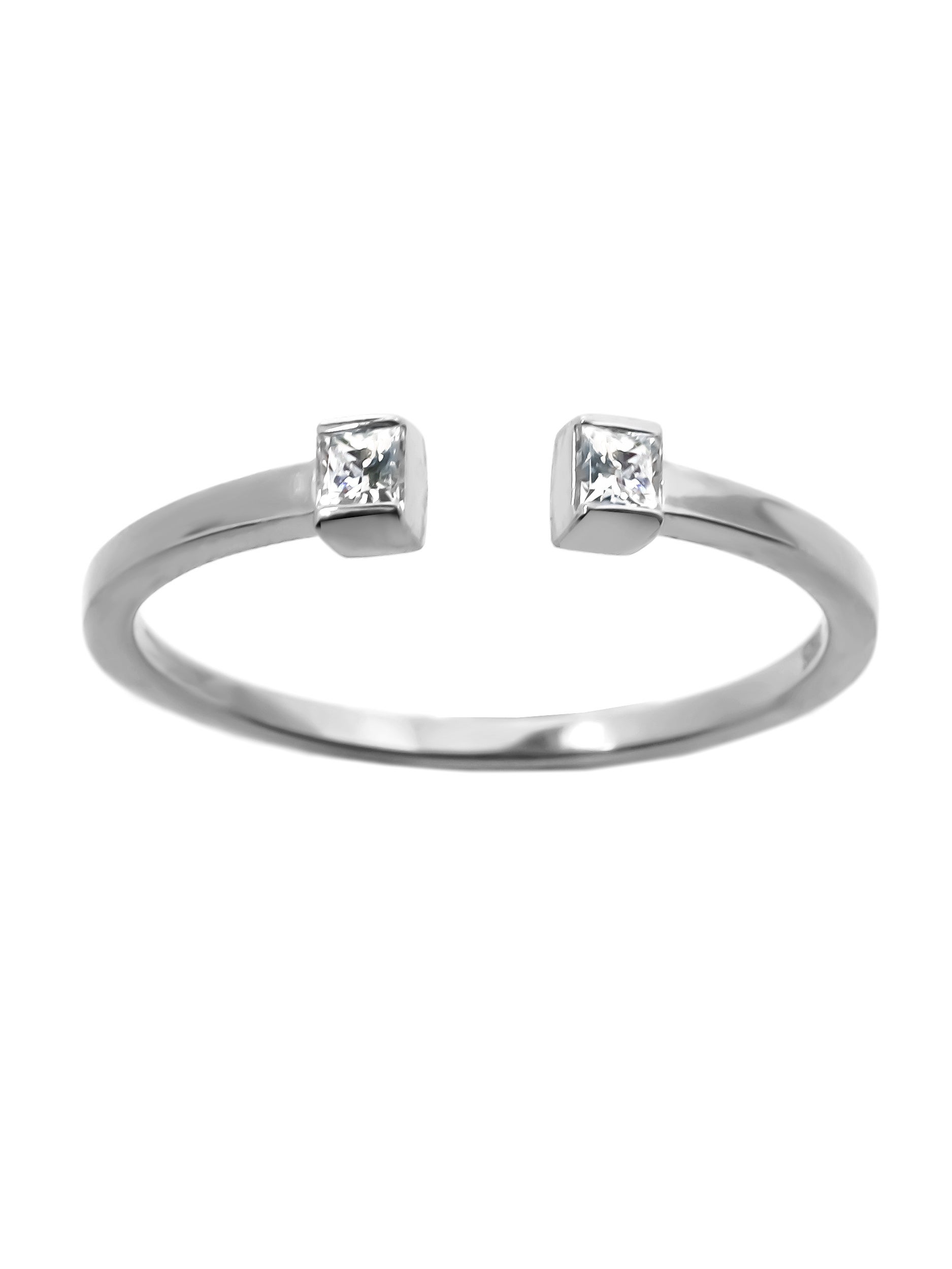 抜け感のあるフォルムに、シャープなプリンセスカットを2石セッティング。