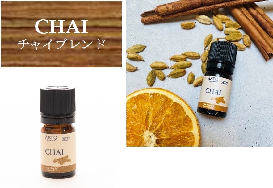 空気は乾燥し肌寒い日、心も体も芯から温まりたい季節におススメです。5種類のオーガニックスパイス精油とフレッシュなオレンジ精油を処方した本格的なチャイ精油ブレンドは、落ち着きとどこか懐かしさを感じるスパイシーな甘さと温かみを放つ香りで、心と身体を芯まで温めてくれるような程よい刺激と優しさがあります。さらにバスルームでの活用で、心と身体をときほぐすようなゆっくりとした呼吸でリラックスへと導いてくれます。