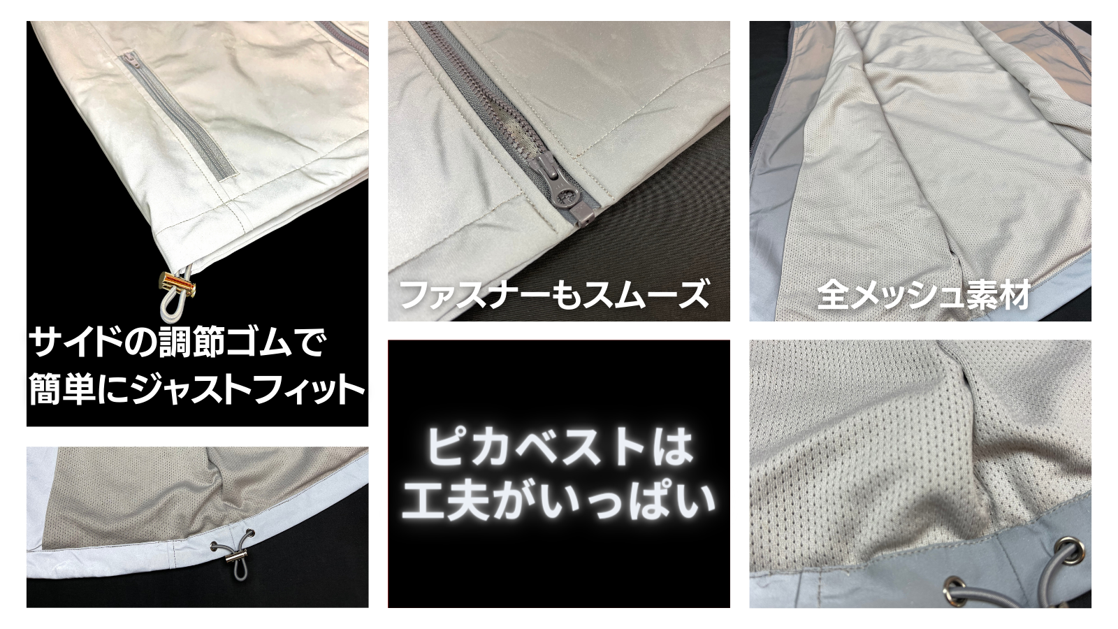 ピカジャケよりも気軽に、より一年を通して長い期間着ていただきたく、ベスト仕様ピカベストにし、パイピング、裏地もグレーカラーで統一しました。