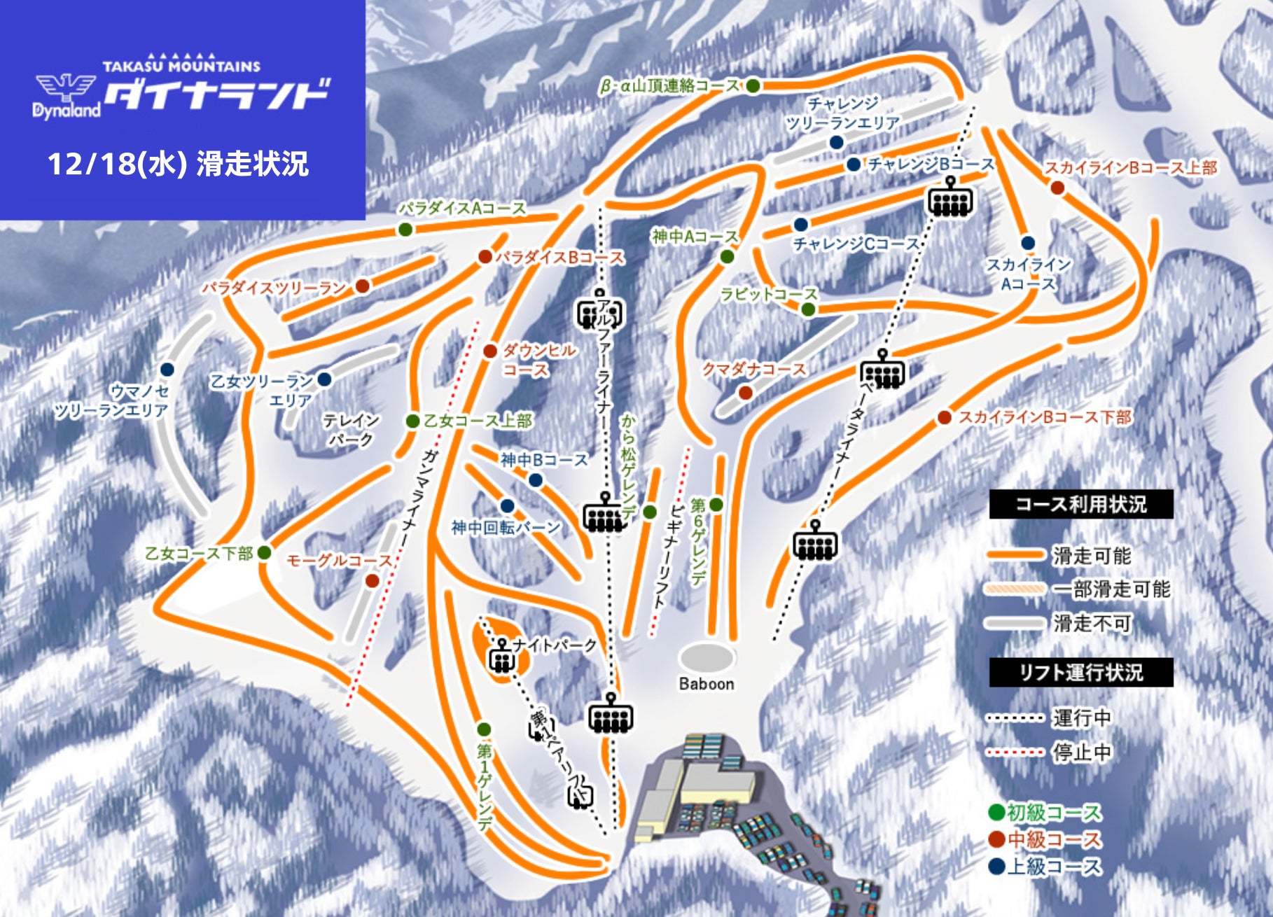 ダイナランドの滑走状況や営業情報はこちらよりご確認ください。