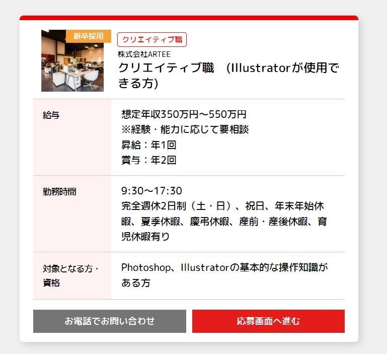 ARTEEはサービス開始時の2018年より、独自のイラストコンテストや大手百貨店、企業、 行政などと様々イラストやデザインコンテストを継続して開催してきております。 その為、多くのクリエィティブな方々にARTEEをご利用いただいております。 ARTEEにてリクルート情報を掲示していただくことで効率よく貴社が求めるクリエィティ ブな人材と出会うことができます。