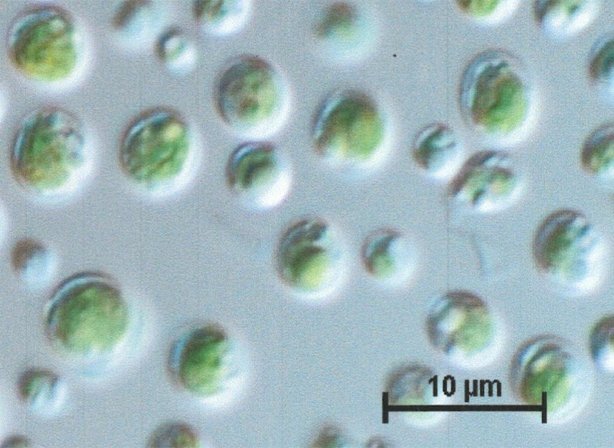 ※温泉藻類 (Mucidosphaerium sp.RG92)の顕微鏡写真