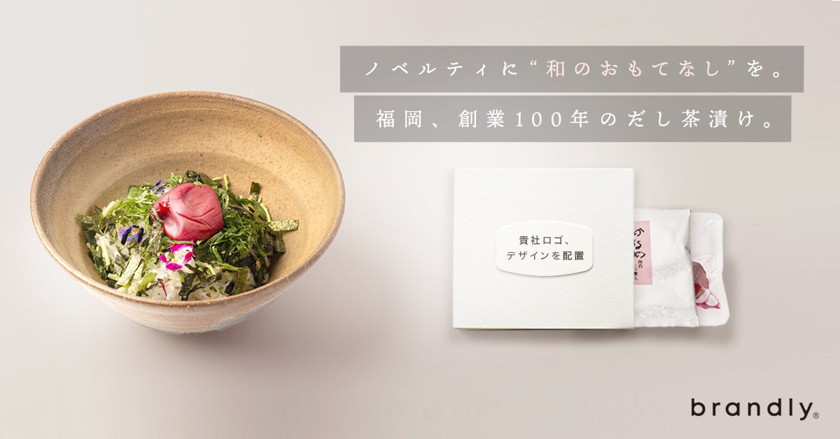 企業向けオリジナルノベルティサービスを提供する「brandly(ブランドリー)」は、創業107年を誇る福岡・かなめとコラボレーションして「和のおもてなしノベルティ」至福のだし茶漬けを販売開始しました。