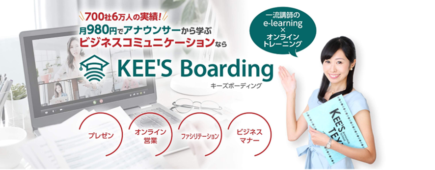 アナウンサーが講師を務める研修会社、株式会社KEE’S(所在地:東京都渋谷区、代表取締役社長 野村絵理奈)は、オンライントレーニングシステム『KEE’S Boarding』(https://company.kees-net.com/keesboarding/)を2022年4月1日から提供開始します。