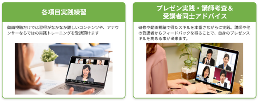スキルは見る・聞くだけでは身に付きません。実践、フィードバックがある事で「わかる」から「出来る」ようになります。毎月50回開催されるオンライントレーニングに何度でも参加可能。他社の受講生とも一緒に参加し、互いに学びあう機会もあります。