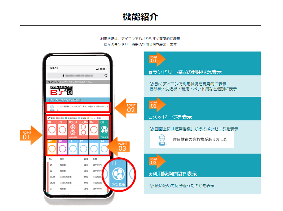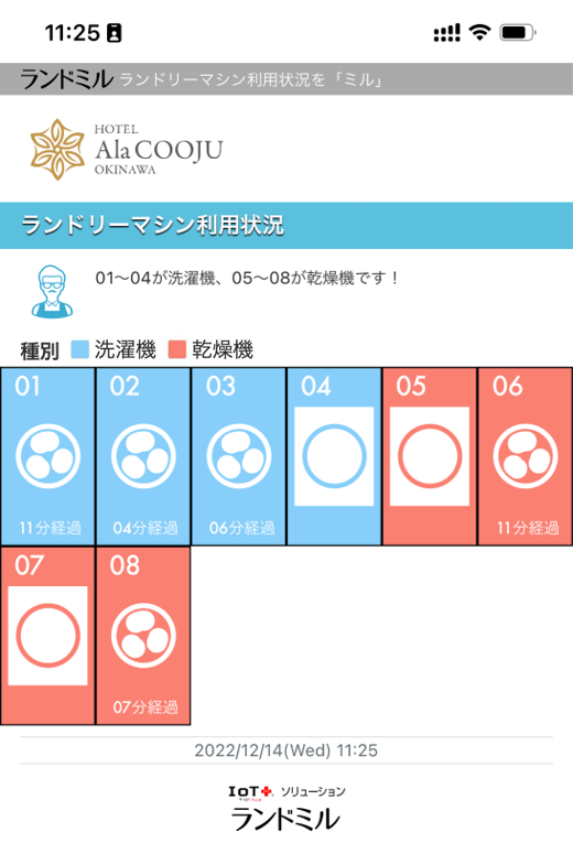 来店前や客室からランドリー機器が空いているかどうか確認できることで、
