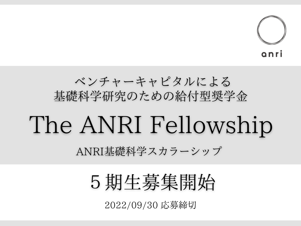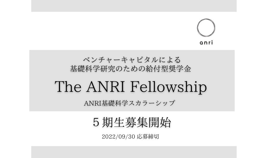 ベンチャーキャピタルANRI 給付型奨学金プログラム「ANRI基礎科学スカラーシップ」第5期生の募集を開始