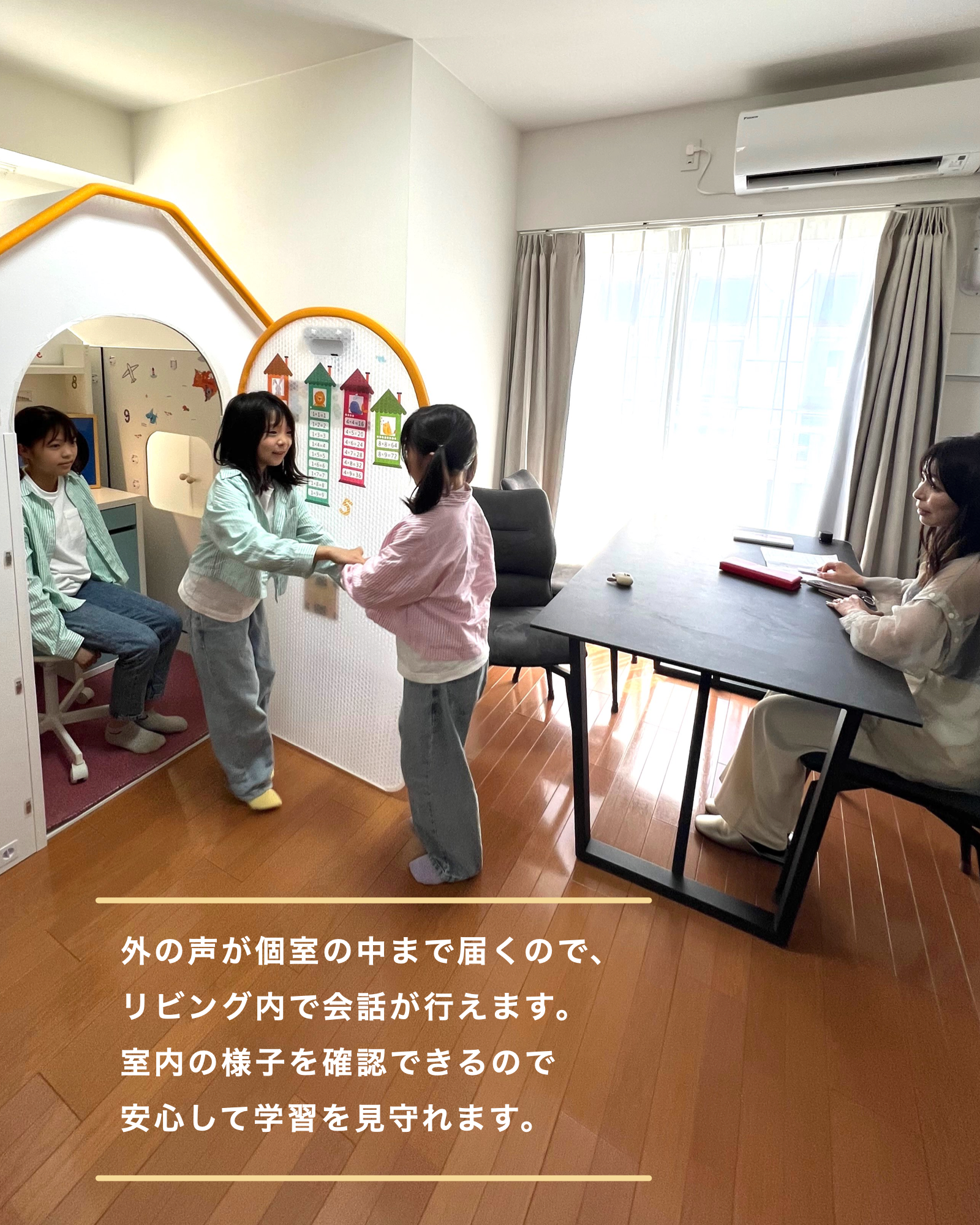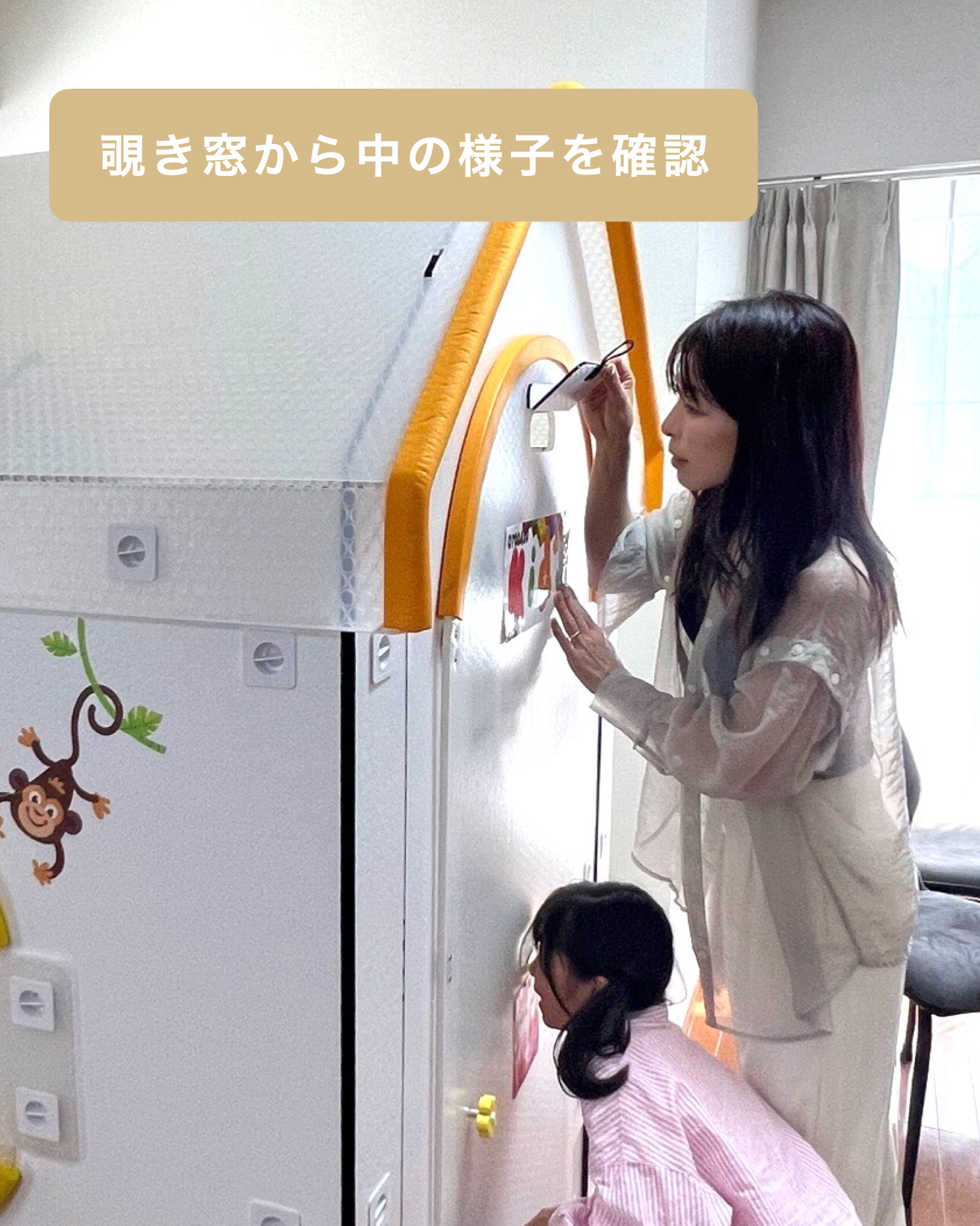 OTODASU KIDSの内部には、外からの声が届くため、お子様の様子を外から確認することができます。お子様の活動を安心して見守ることができます。