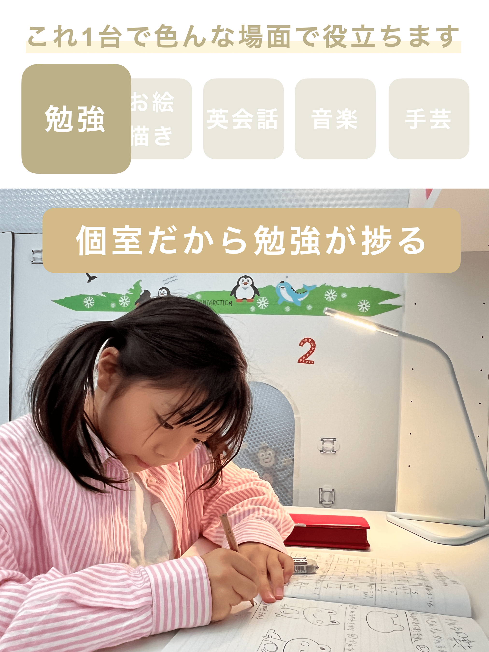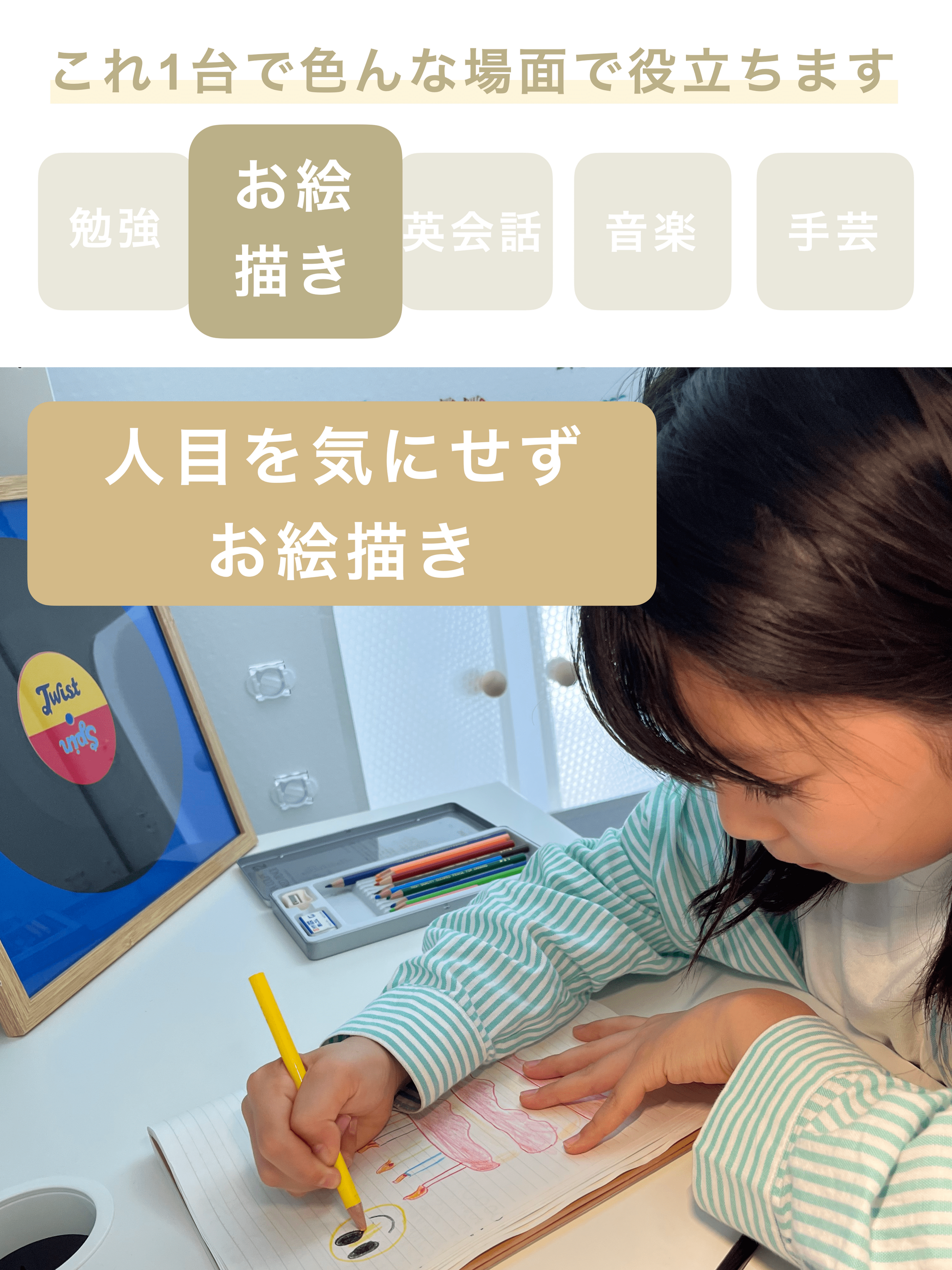 組立式の簡易防音室としてOTODASUを展開する中で、「子供が集中して勉強できる学習スペースを簡単に作りたい。」「絵を描いているところを兄弟に見られたくないが、子供部屋がない。」「ご兄弟が多いと、一人一人に個室を与えられない」といったお子様を持つご家族の居住空間に関する声を多く頂きました。