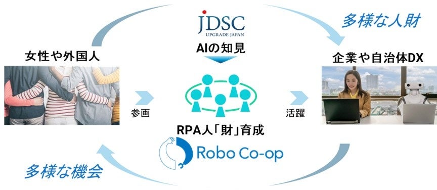 株式会社JDSC(所在地:東京都文京区、代表取締役:加藤エルテス聡志、以下「JDSC」)は、女性や外国人のDX人「財」化に取り組む一般社団法人Robo Co-op(所在地:島根県浜田市、代表理事:金 辰泰、以下「Robo Co-op」)と業務提携を行い、RPA×AIによるDX加速と、多様な人財が輝ける社会の実装に取り組みます。