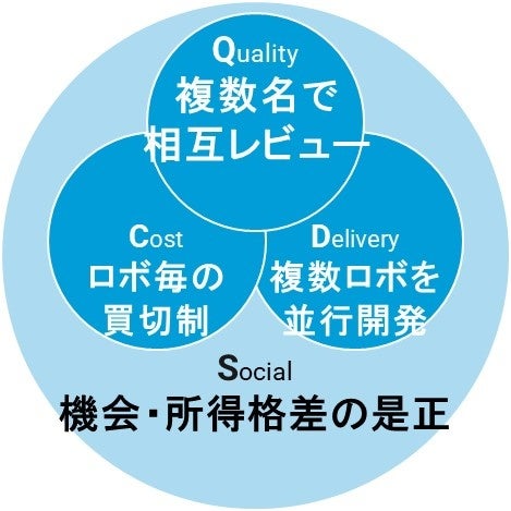 また、育児や介護でフルタイムでは働きづらい多様なDX人財の活躍に向けて、リモートワークやシフト制、成果報酬モデルを組み合わせた柔軟な働き方を担保しています。そのため、デリバリー体制にも特徴があり、例えば1体のRPA開発を複数名のグループが買い切り制で請け負います。そうすることで無理のない柔軟な勤務時間を担保すると同時に、相互レビューによる品質改善や複数ロボの並行開発を実現します。