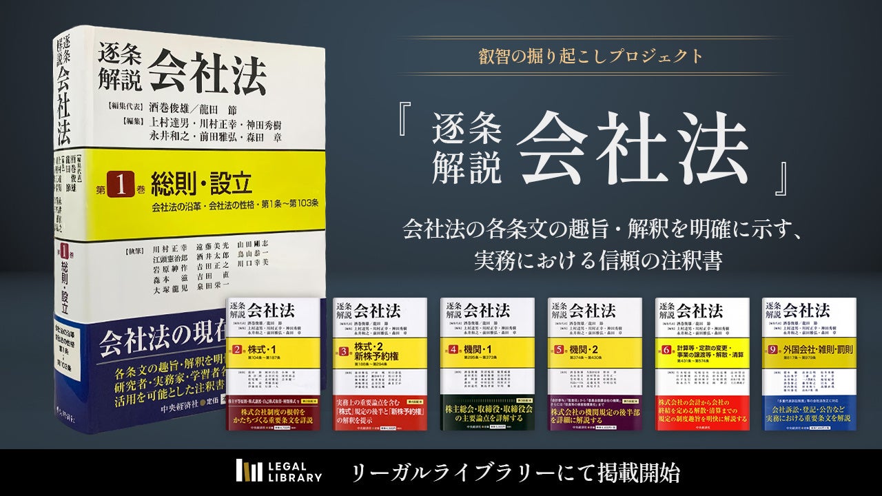 LEGAL LIBRARY(リーガルライブラリー)が、「叡智の掘り起こしプロジェクト」として『逐条解説会社法』の著作権を活性化