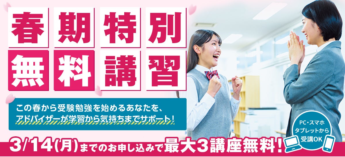 [ お申し込み期間 ] 現在~3月14日(月)までのお申し込みで最大3講座無料!