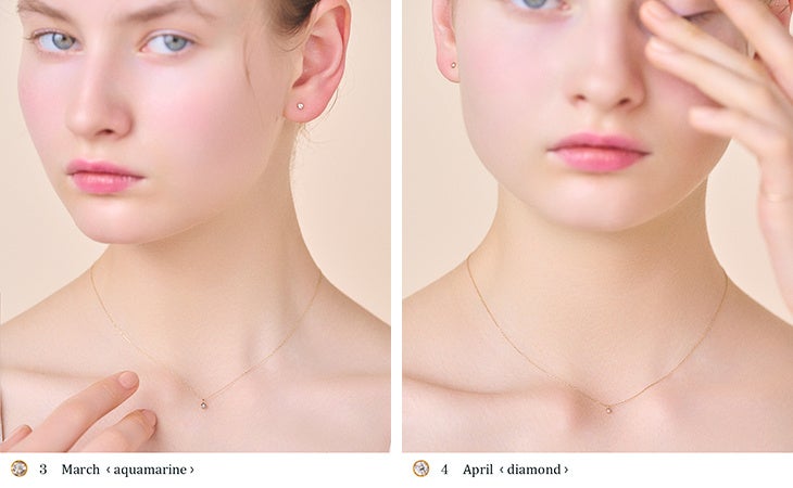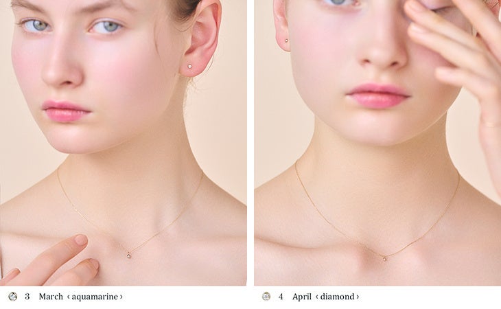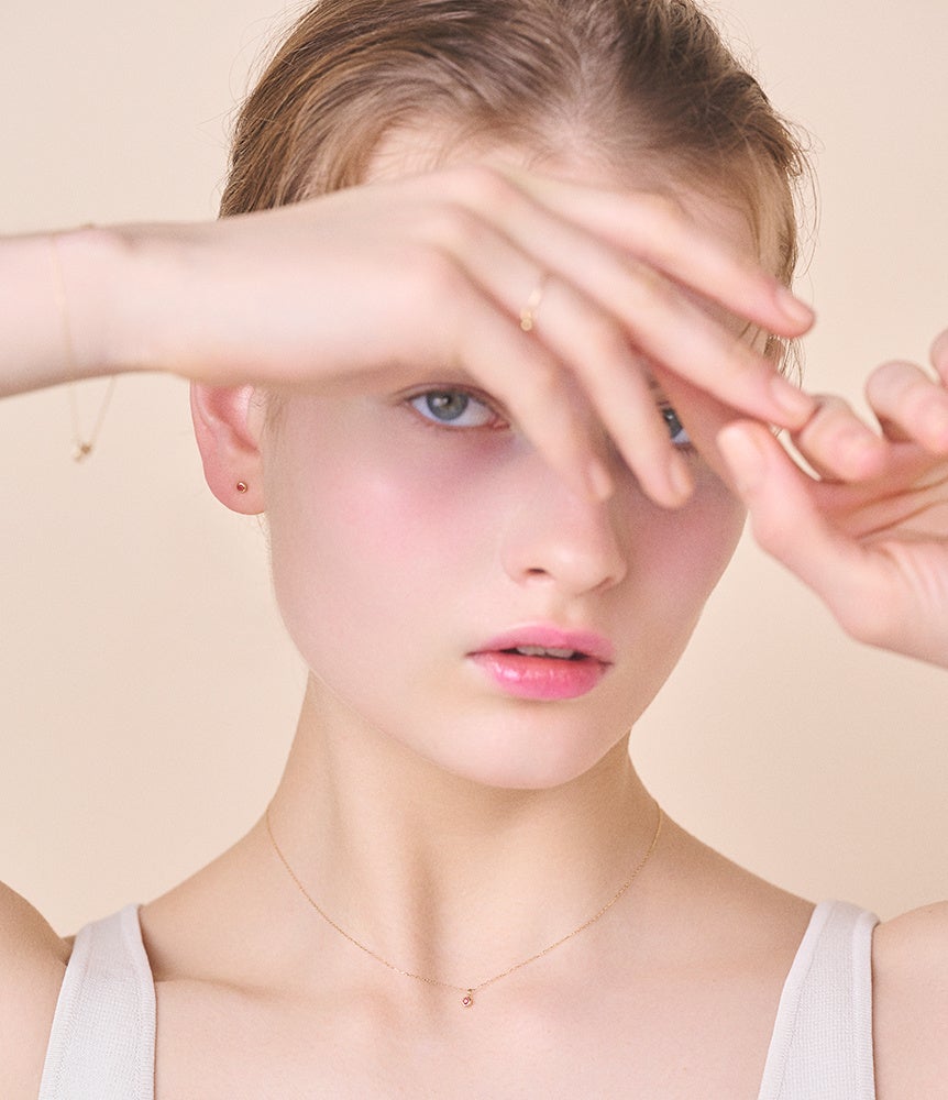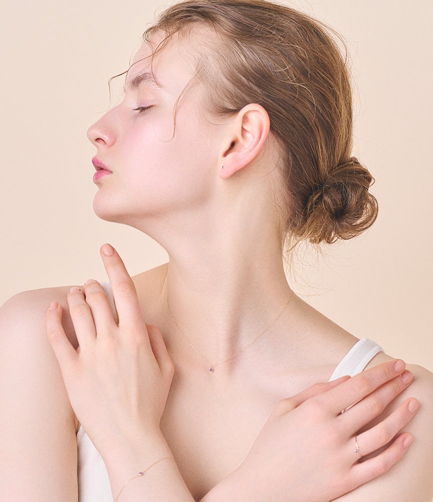 毎日身に付けられるように、繊細に煌めく10金チェーンとさり気ない存在感のストーンをセッティング。