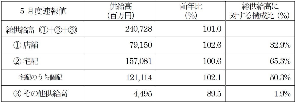 〇5月度の総供給高は、前年比101.0%で9カ月連続の前年超えとなりました。