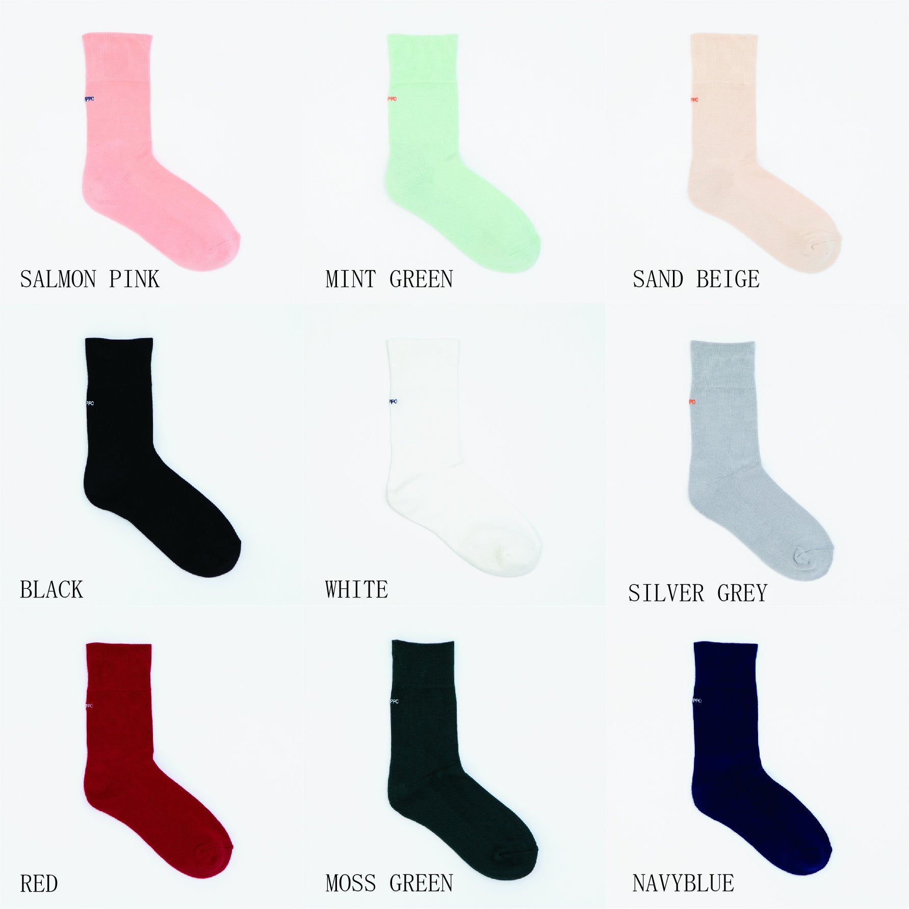 着圧を分散させる幅広のリブ、「糸・編み・仕上げ」と全ての工 程でこだわった、ストレッチ性。足裏をやさしくつつむパイル生地。足にストレスを与えない最上級の履き心地を目指しました。