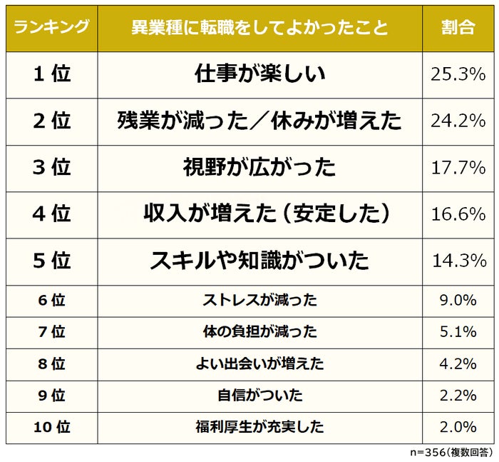 ・20代で異業種に転職してよかったこと1位は「仕事が楽しい」