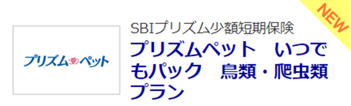 『プリズムペット いつでもパック 鳥類・爬虫類プラン』