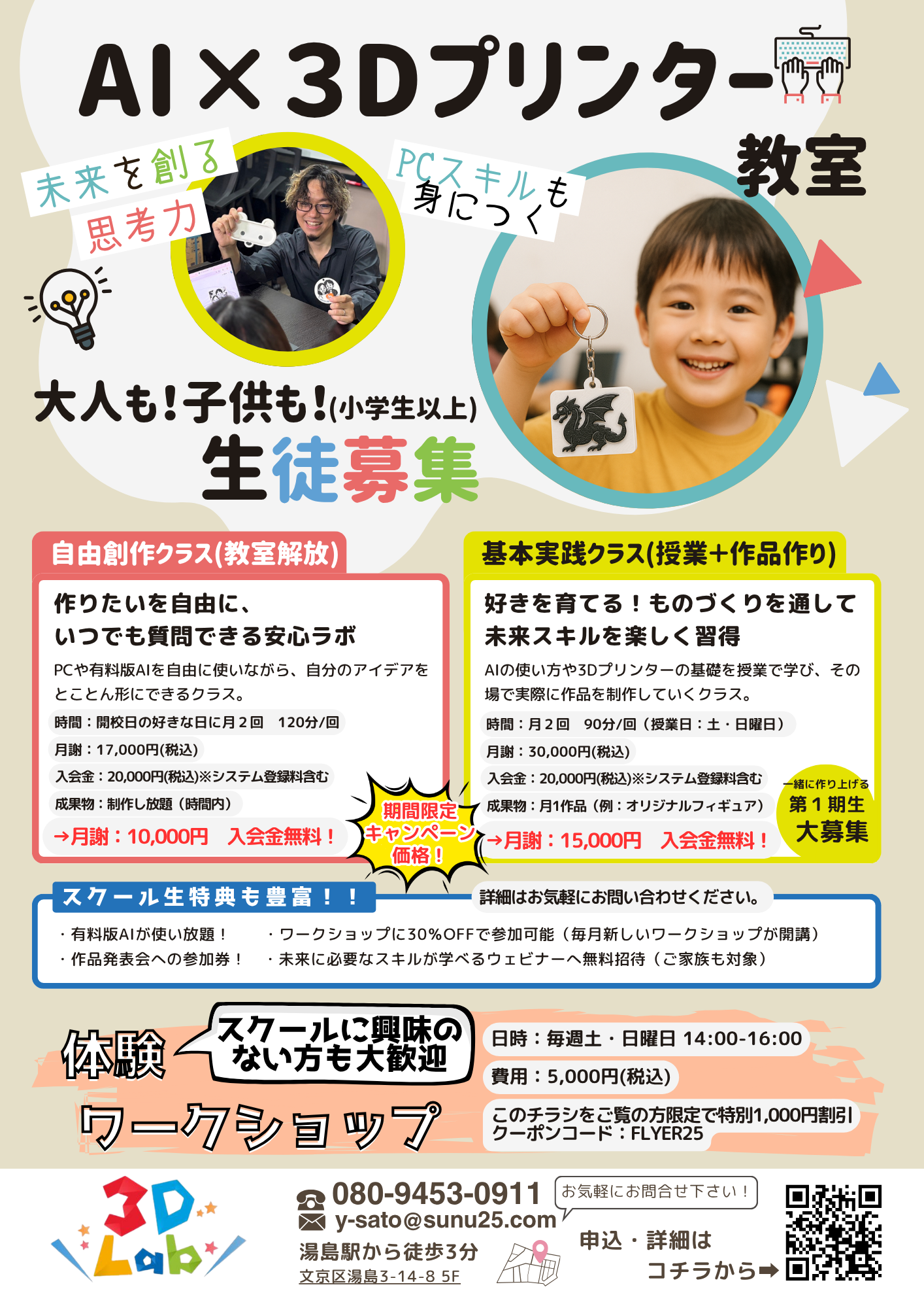 3DLab(東京・湯島)は、生成AIと3Dプリンターを融合させた楽しく学べるスクールです。