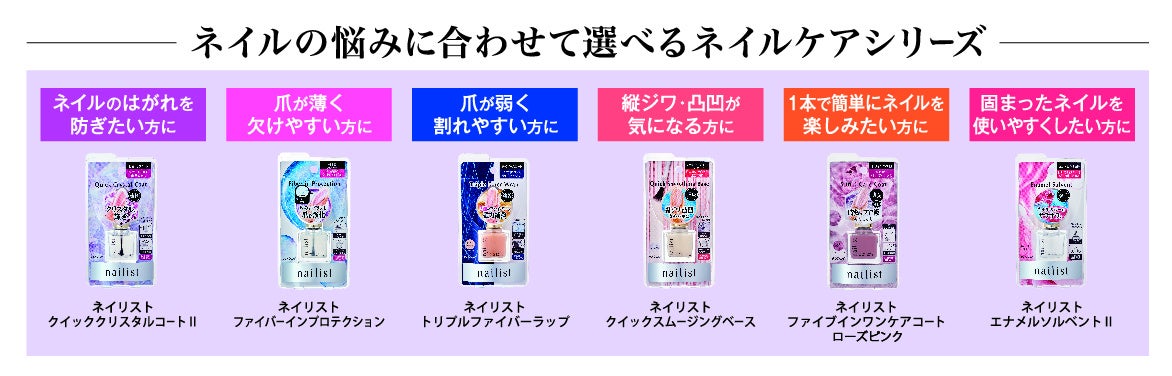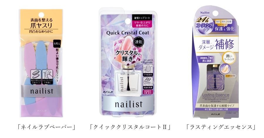「ネイリスト」は、初心者の方でも簡単に自宅でサロンクオリティのセルフネイルが楽しめるネイルケアブランドです。1986年、日本でいち早くネイルケアブランドの展開を始めたコージー本舗から、1997年に誕生しました。爪やすりや爪みがき、ベースコート・トップコート、エナメルリムーバー、美容液、オールインワンネイル、速乾スプレーと、ネイル製品を網羅した豊富なラインアップを取り揃え、累計800万個※の売り上げを誇る人気シリーズです。