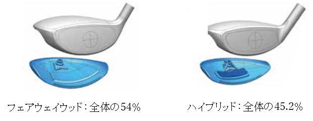 フェアウェイウッドはヘッド全体の54%、ハイブリッドはヘッド全体の45.2%もの重量をソールに集中。