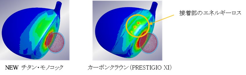 極薄クラウン(最薄部0.30mm)でカーボンクラウン同等の重心設計。