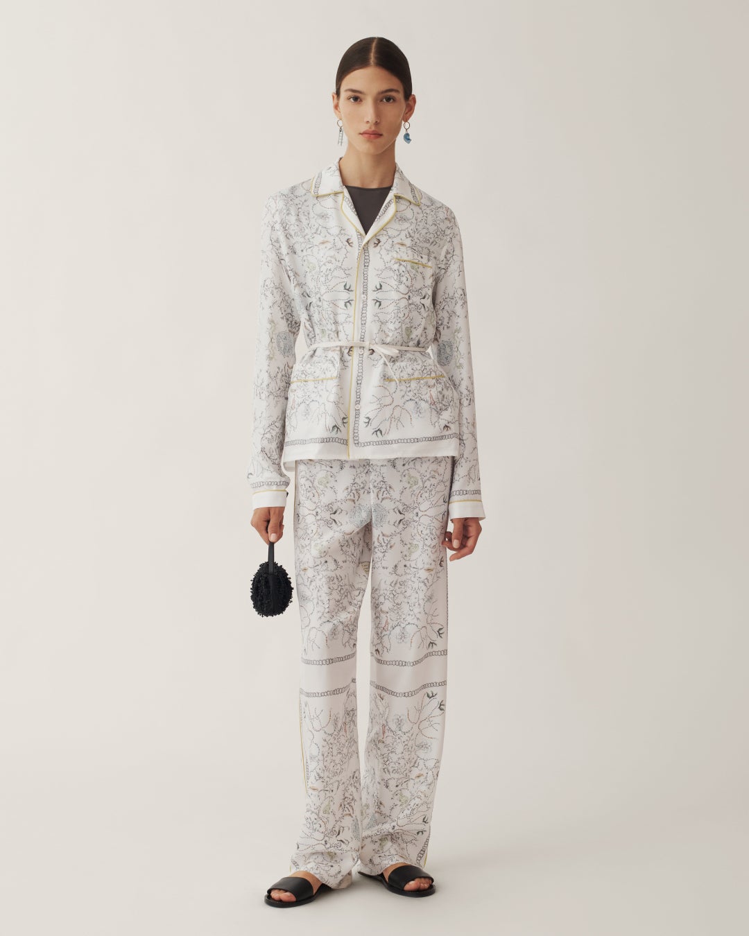 中世の動物図鑑から着想を得た図柄“FABULA(ファーブラ/寓話)”をシルクツイルへのプリントや繊細なジャカードレースに仕上げて構成したカプセルコレクション。ファビアナフィリッピのルーツであるウンブリアの地が、中世の動物図鑑の図像をテキスタイルに使用していたことから、このコラボレーションは生まれました。出会うべくして出会ったこのコラボレーションは、「ルーツに立ち返ろう」というブランドの意図も込められています。