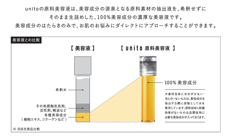 unitoは化粧品の効果の源泉である「美容成分」を抽出する「原料素材」そのものの「質」に着目。肌に直接触れる化粧品も、食材を厳選するように素材の品種、産地、旬、鮮度。そして製法と抽出方法に徹底的にこだわっています。