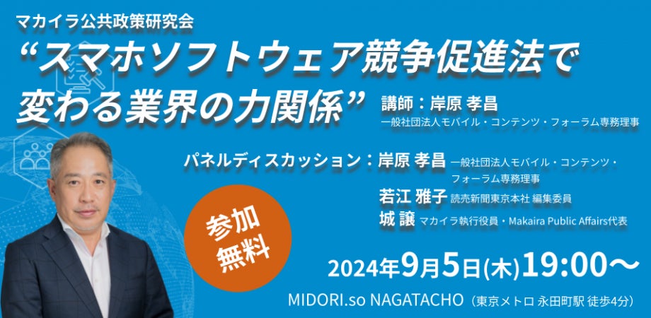【9/5(木)開催】スマホソフトウェア競争促進法で変わる業界の力関係(講師:岸原 孝昌氏)【マカイラ公共政策研究会】