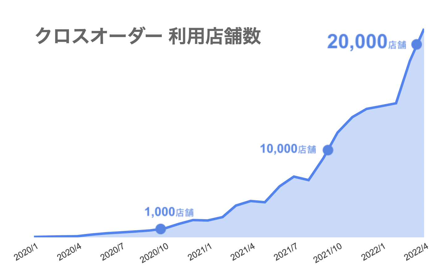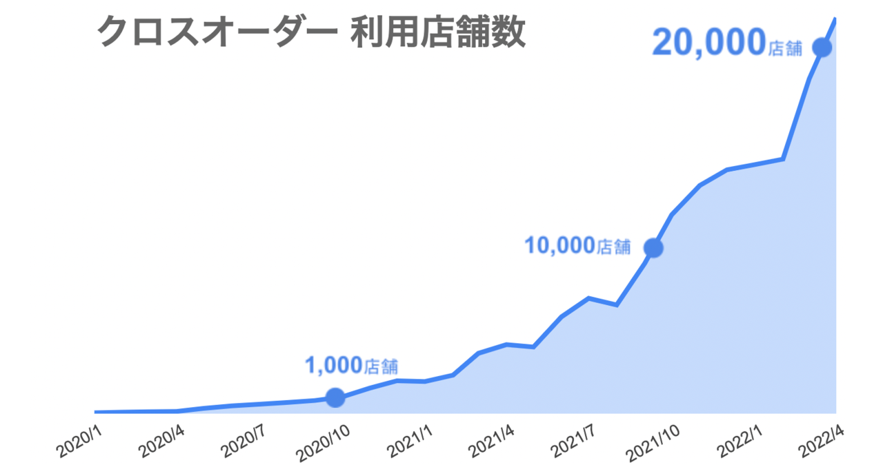全国には約600,000の飲食店さんがあり、クロスオーダーをお使いの飲食店さんはまだたったの3%です。まだまだ小さな実績ですが、それでも20,000店舗もの飲食店さんにクロスオーダーを使っていただけていると思うと、大変誇らしいです。