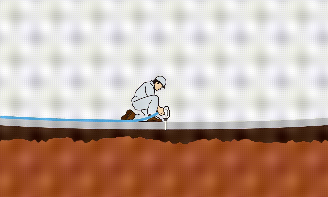 メインマークは施工中であっても日常業務を継続していただくことを大切にしています。 床や建物を壊さないことにこだわり、コンクリート土間床下の空洞を埋め、傾いた床や建物の傾きを直し、建物の下の地盤改良工事を提供します。