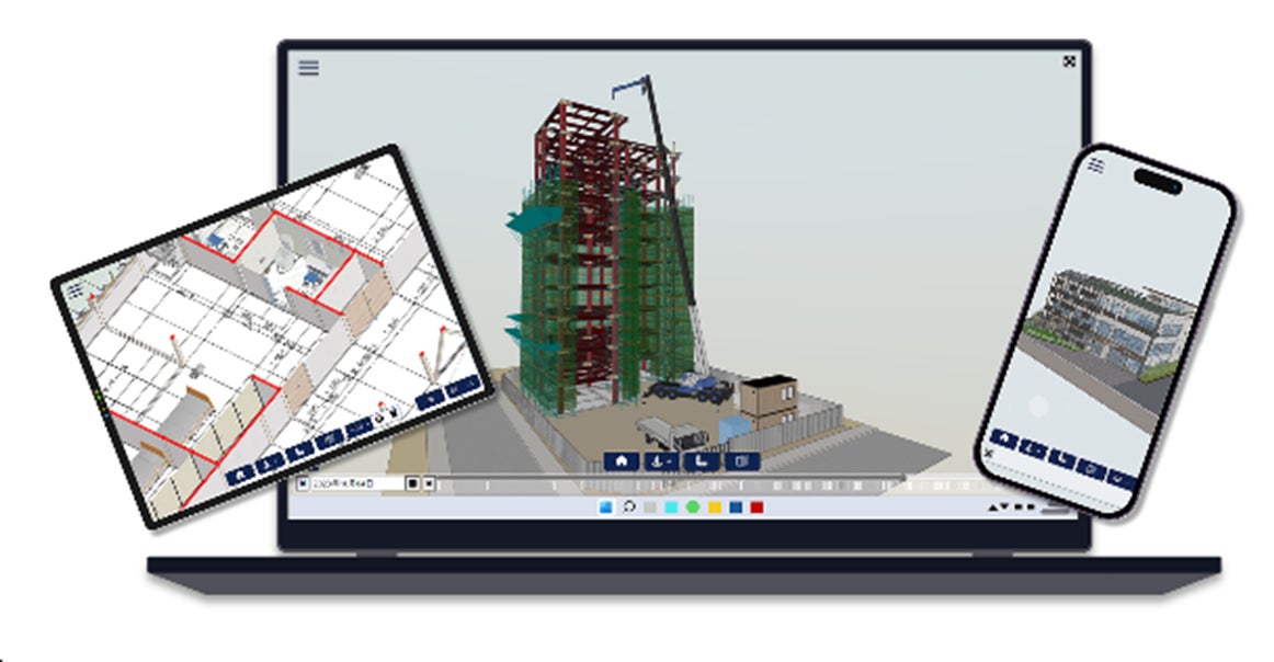 ・マルチデバイス対応としてPCやタブレット、スマホなどから手軽にBIMデータへアクセスしてもデータ確認が可能。