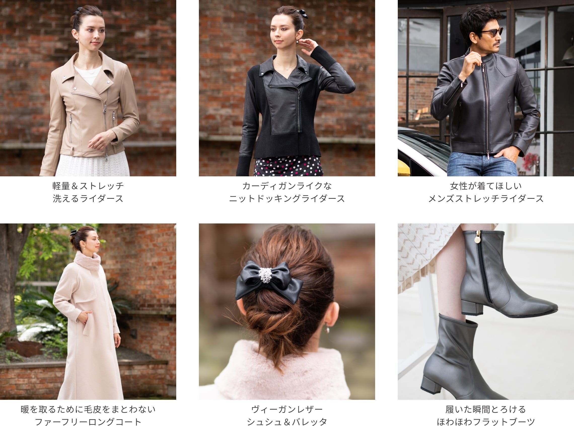 2022AWコレクションでは、高品質で高性能なヴィーガン素材を使用したストレッチライダースやファーフリーコート、ヘアアクセサリー、ブーツなどの「エシカル&エレガントライン」を販売しています。