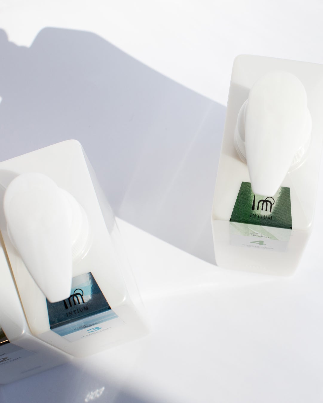 インティウム施術後の髪のためのホームケア。週に一度のご使用で、弾力としなやかさを併せ持ったうるおいのある質感を持続させます。