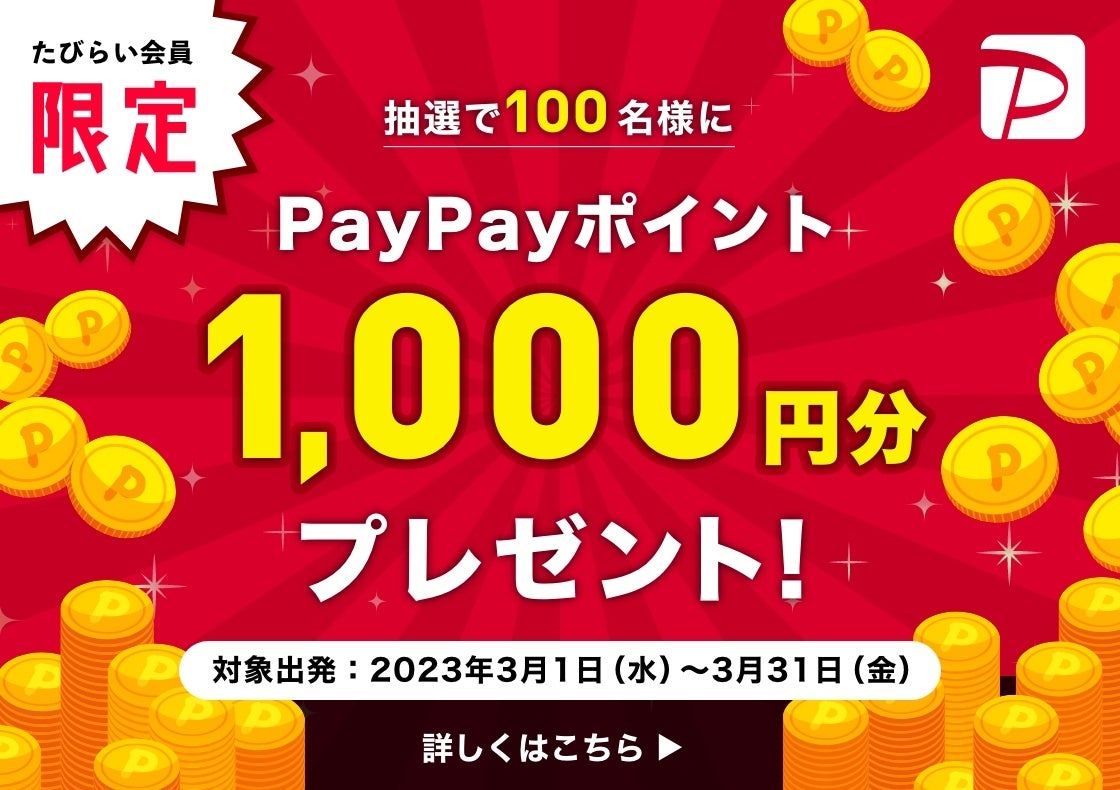 ◆【たびらい会員限定】PayPayポイントプレゼントキャンペーン!