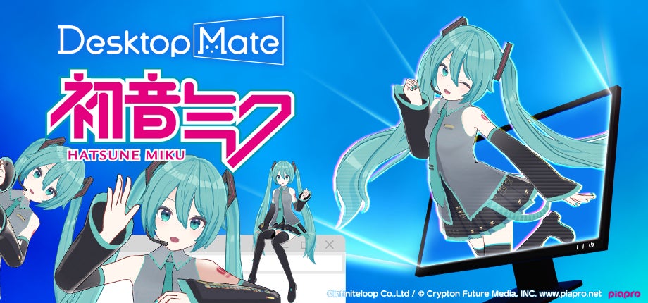 株式会社インフィニットループ(本社:北海道札幌市、代表取締役社長:小野真弘)は、世界的人気を誇るバーチャルシンガー「初音ミク」を第一弾キャラクターとする、Windows用デスクトップマスコットプラットフォーム「Desktop Mate(デスクトップメイト)」を、2025年1月8日よりSteamにて配信開始いたします。本作は2024年12月のSteamストアページ公開からわずか約2週間でウィッシュリスト登録者数が3万人を突破し、大きな注目を集めています。