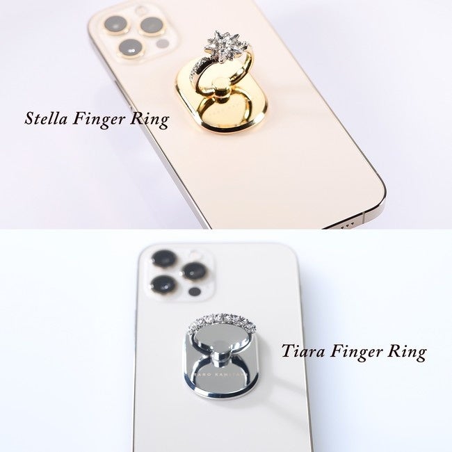 ティアラと同じく、日本のハイジュエリー職人が原型製作を行い、ディティールやプロポーションの美しさと共に、耐久性にも優れている。スマホリングを着けた人の、手元や指の美しさを考えて、デザイン設計。シンプルで洗練されたデザインは、合わせるスマホ、ファッション、シーンを選ばず、長く愛用できる。