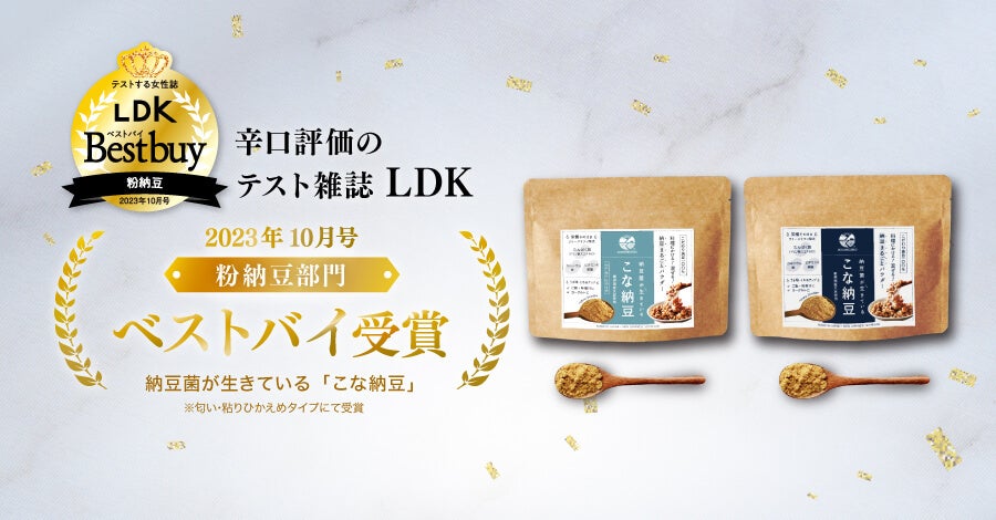 【初受賞】忖度なしの辛口評価で人気の雑誌LDKで、そのもの納豆菌シリーズ「こな納豆」が、ベストバイ受賞(粉納豆部門)