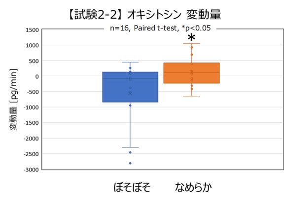 食感の異なるポテトサラダや蒸しじゃがいもを摂取し、サンプルごとのオキシトシン変動量※2の違いを比較。あわせて、簡易気分調査票日本語版(BMC-J)による気分の変化も測定し生理・