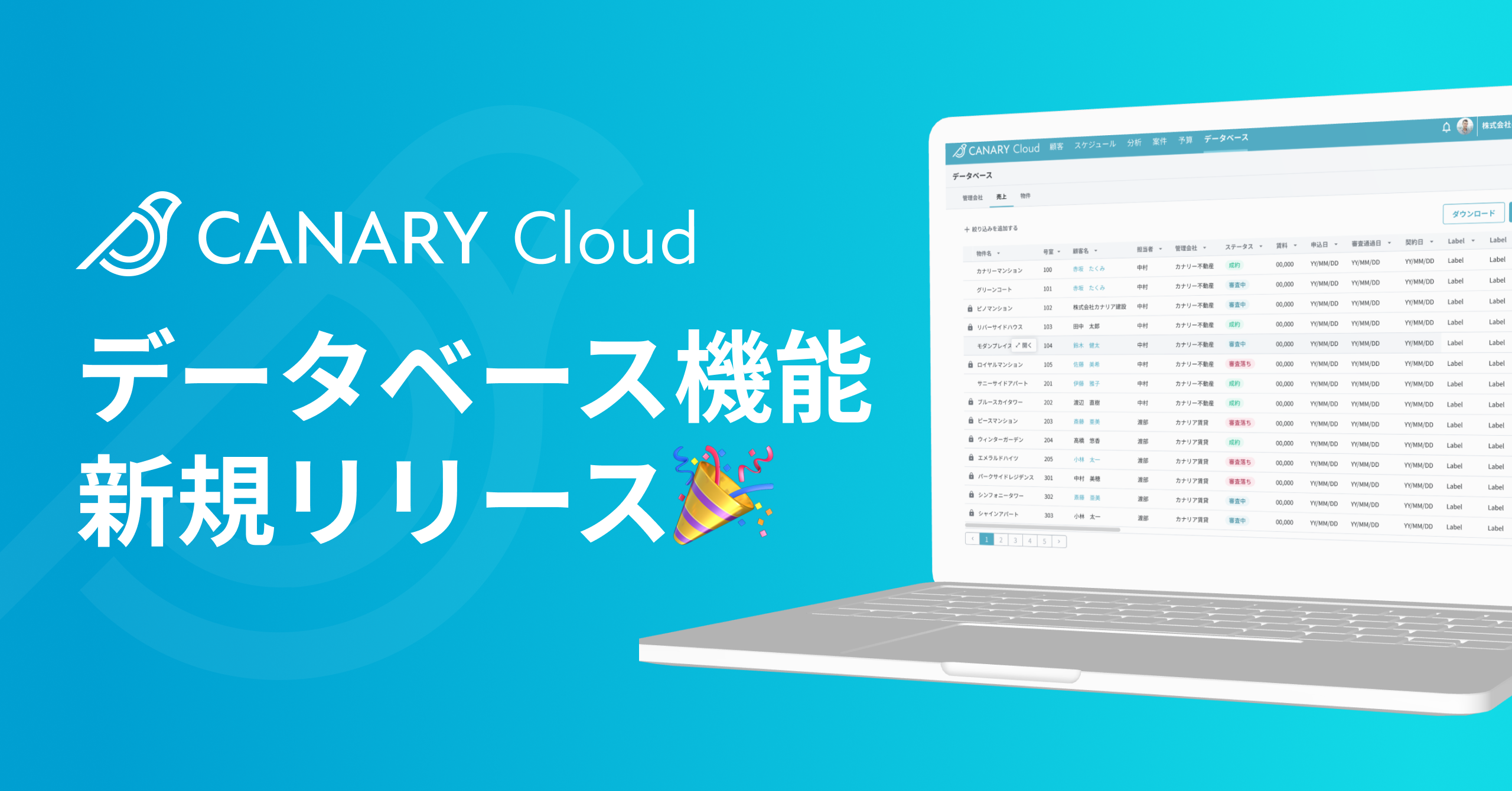 2024年2月、当社が開発・運営する不動産業務特化型SaaS「カナリークラウド(CANARY Cloud)」(https://cloud.canary-app.jp)において、利用仲介会社のご要望を受け、新たに「データベース機能」がリリースされます。