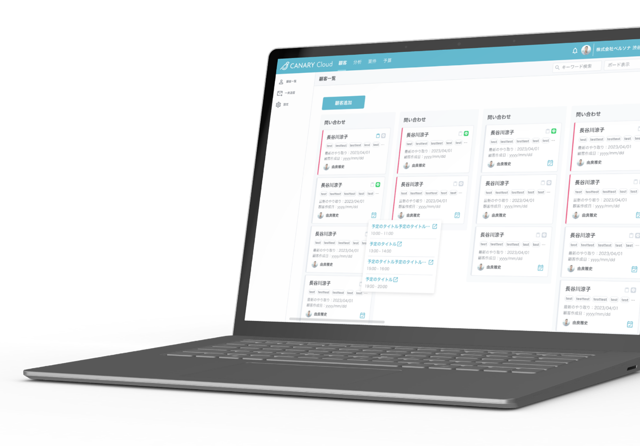 「カナリークラウド(CANARY Cloud)」は、不動産仲介会社に特化した顧客管理システム(CRM)です。